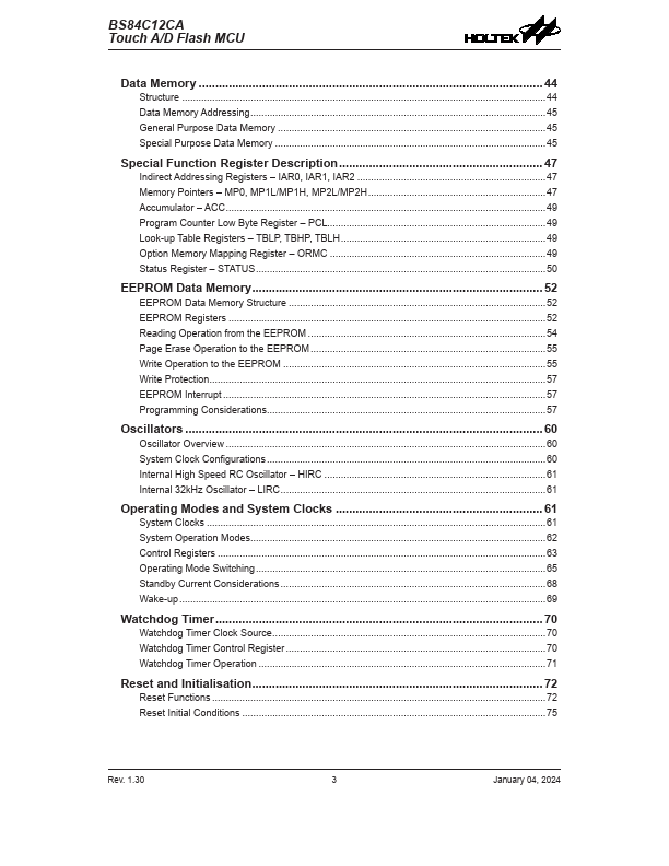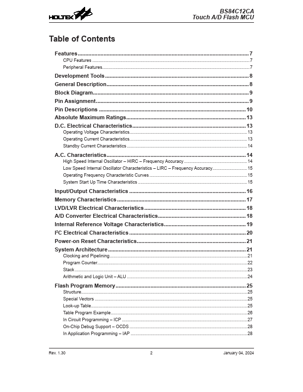 8 Block Diagram 9 Pin Assignment 9 Pin Descriptions 10 Absolute Maximum Ratings 13 D.C. HIRC Frequency Accuracy14 Low Speed Internal Oscillator Characteristics LIRC Frequency Accuracy 15 Operating Frequency Characteristic Curves15 System Start Up Time Characteristics15