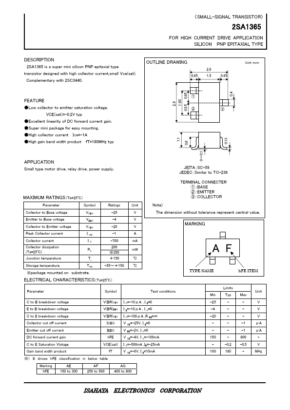 | 2SA1365 | SILICON PNP TRANSISTOR | LZG |