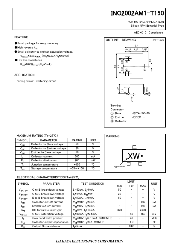 | INC1001AC1-T150 | SILICON NPN EPITAXIAL TYPE TRANSISTOR |