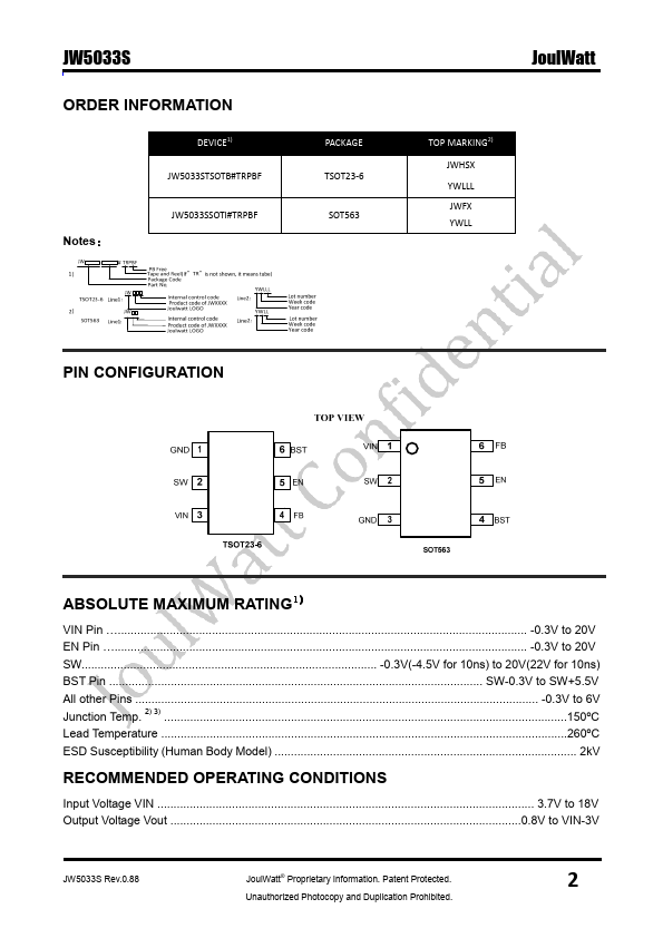 The JW®5033S is a current mode monolithic buck voltage converter.