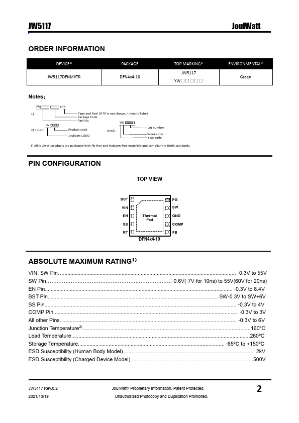 The JW®5117 is a current mode monolithic buck switching regulator.