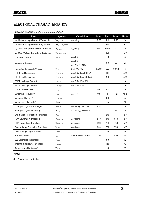 Operating with an input range of 2.5V-6V, the JW5213L delivers 3A of continuous output current with integrated P-Channel and N-Channel MOSFETs.