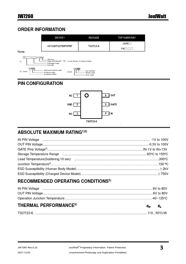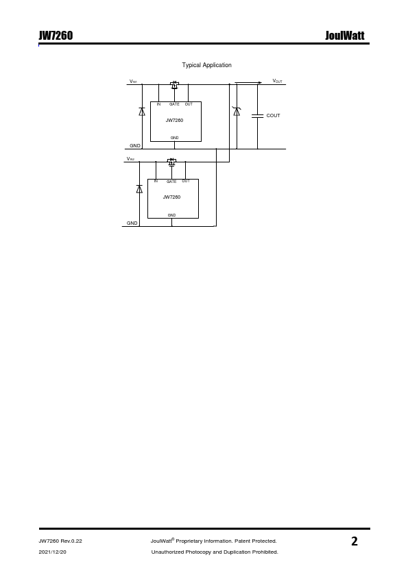 The JW®7260 is a positive voltage ideal diode-OR controller that drives an external N-channel MOSFET.
