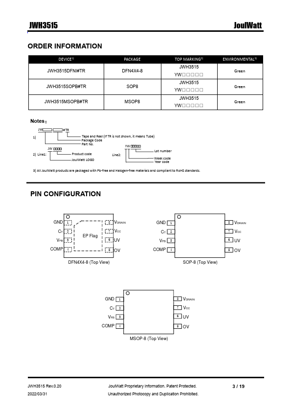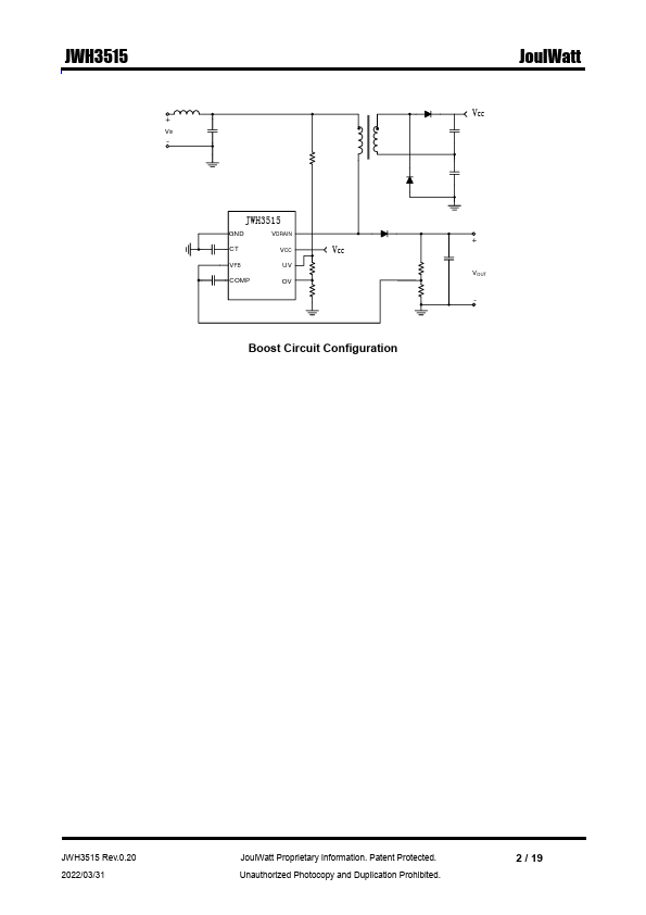 The JWH3515 is an offline miniature high-voltage power switching regulators with on-chip power switch and startup circuits.