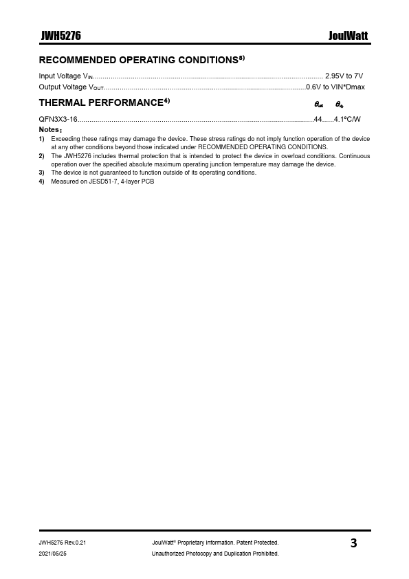 Operating with an input range of 2.95V~7V, JWH5276 delivers 6A of continuous output current with integrated two MOSFETs.