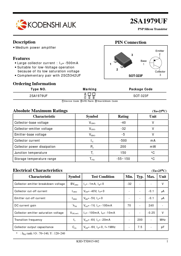 | 2SA1979UF | PNP Silicon Transistor | AUK corp |