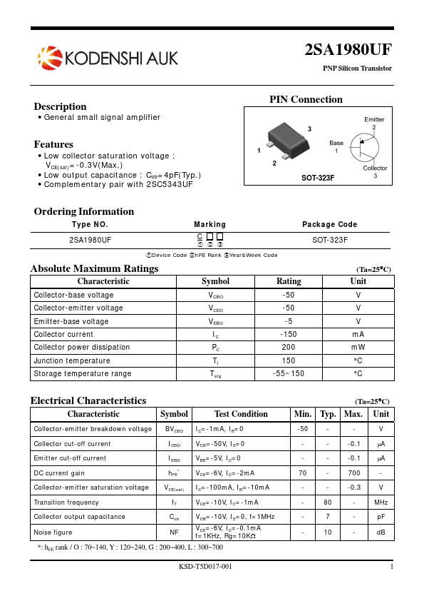 | 2SA1980UF | PNP Silicon Transistor | AUK corp |