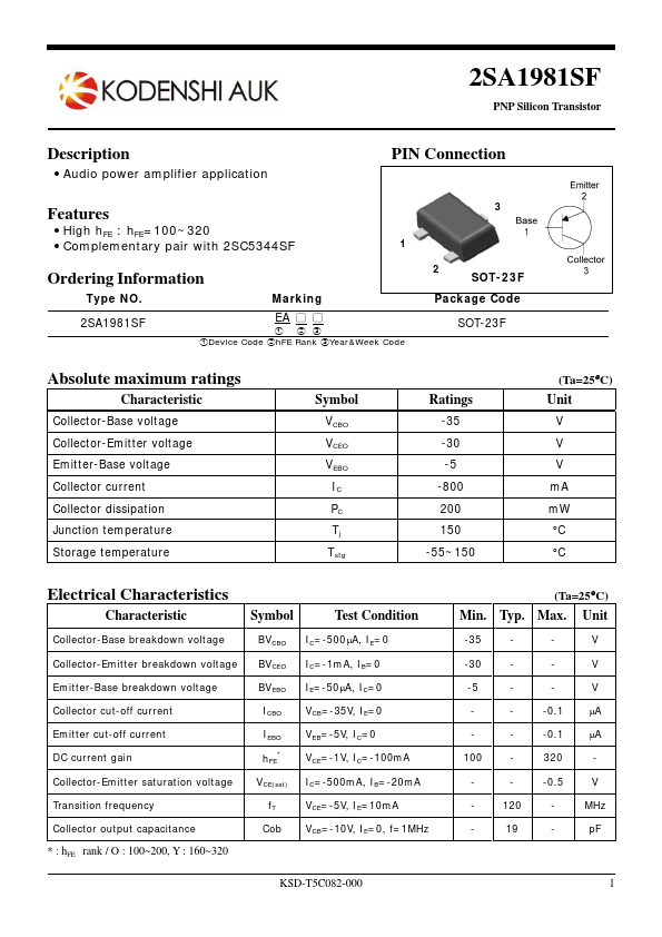 | 2SA1981SF | PNP Silicon Transistor | AUK corp |