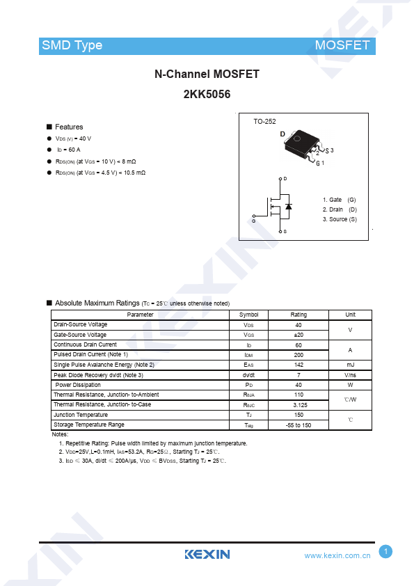23 1 1. Gate (G) 2. Drain (D) 3. Source (S)