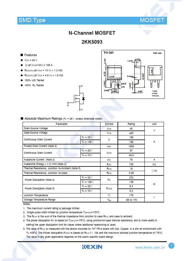 ● RDS(ON) (at VGS = 4.5 V) < 1.8 mΩ