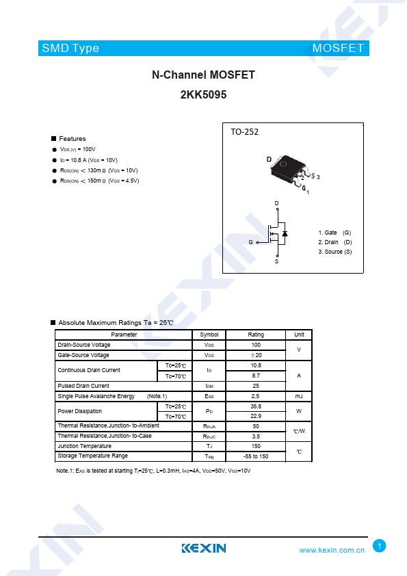Note.1: EAS is tested at starting Tj=25 , L=0.3mH, IAS=4A, VDD=50V, VGS=10V