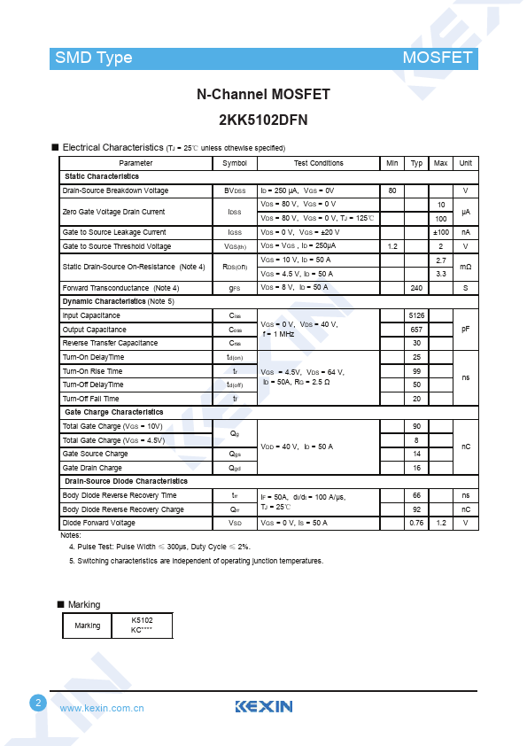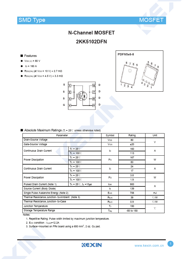 ● VDS (V) = 80 V ● ID = 160 A ● RDS(ON) (at VGS = 10 V) < 2.7 mΩ ● RDS(ON) (at VGS = 4.5 V) < 3.3 mΩ