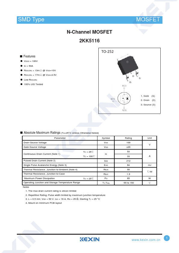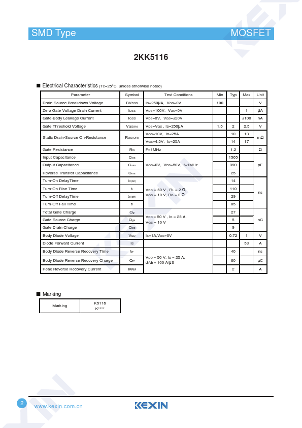 N-Channel MOSFET 2KK5116