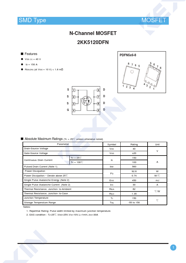 1. Repetitive Rating: Pulse width limited by maximum junction temperature. 2.