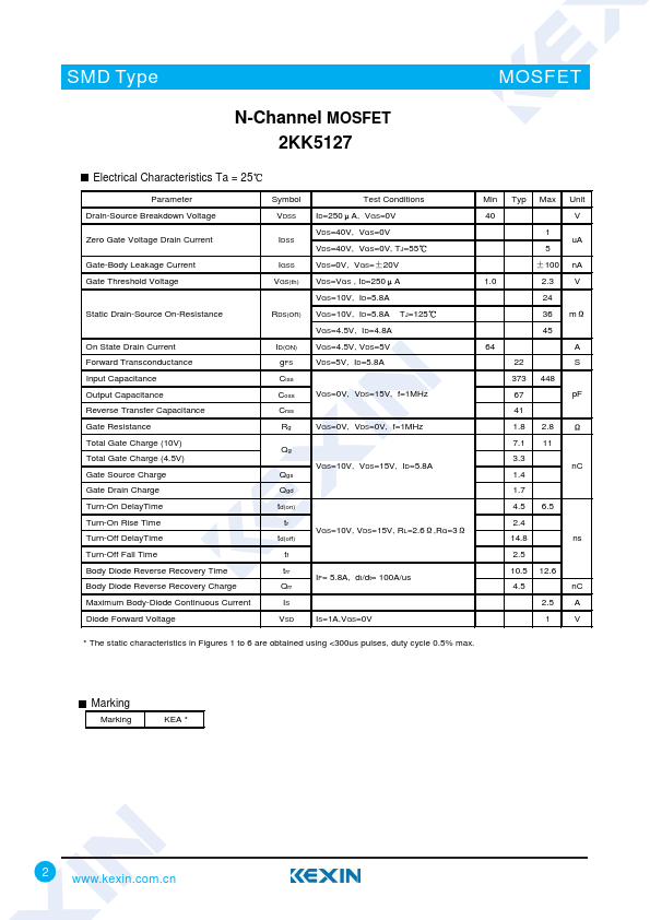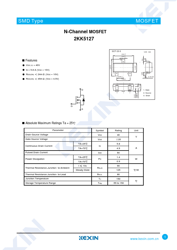 VDS (V) = 40V ID = 5.8 A (VGS = 10V) RDS(ON) 24m (VGS = 10V) RDS(ON) 45m (VGS = 4.5V)