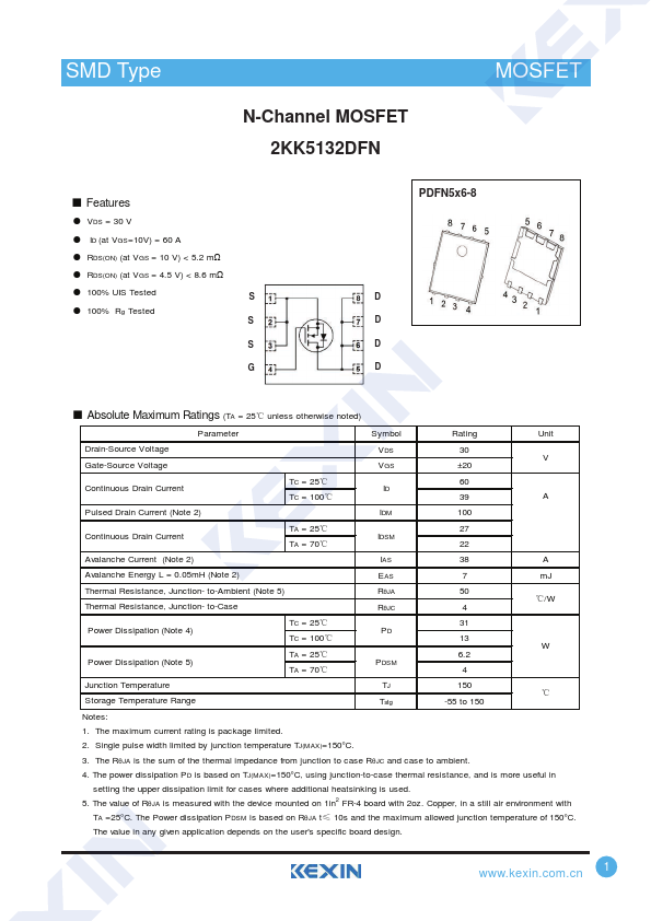 ● RDS(ON) (at VGS = 10 V) < 5.2 mΩ