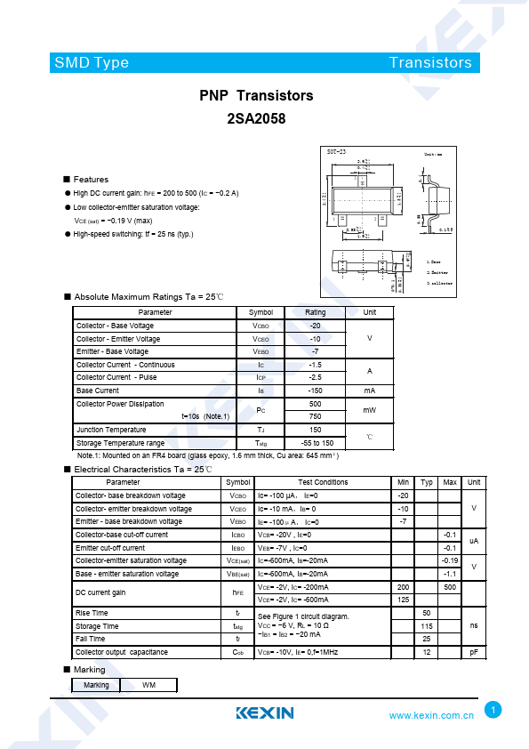 VCE (sat) = −0.19 V (max) ● High-speed switching: tf = 25 ns (typ.)
