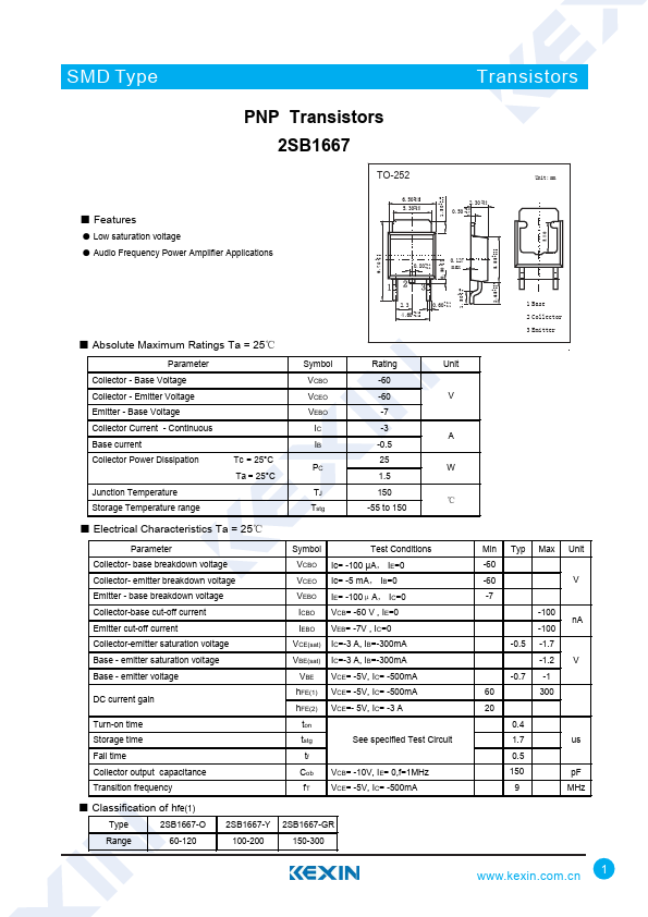 ● Low saturation voltage ● Audio Frequency Power Amplifier Applications
