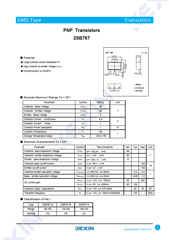 Parameter Collector - Base Voltage Collector - Emitter Voltage Emitter - Base Voltage Collector Current - Continuous Collector Current - Pulse Collector Power Dissipation Junction Temperature Storage Temperature range.