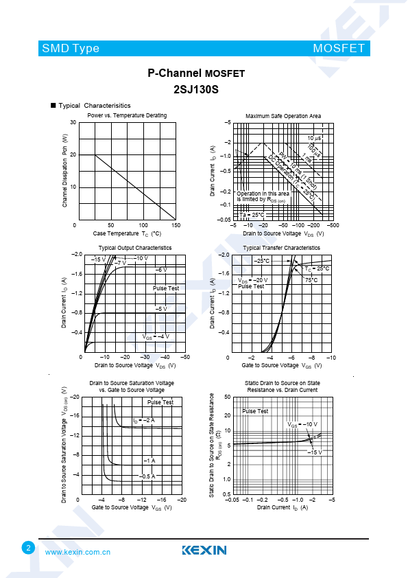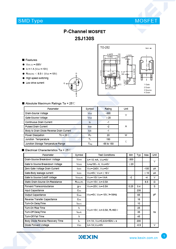 Datasheet Details Part number 2SJ130S Manufacturer Kexin Semiconductor File Size 1.10 MB Description P-Channel MOSFET Datasheet 2SJ130S Datasheet