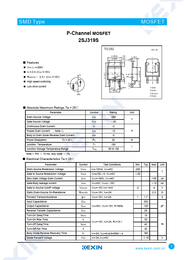 P-Channel MOSFET 2SJ319S