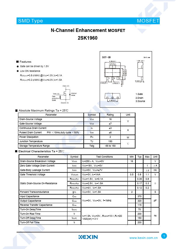 | 2SK1960 | 30V N-Channel MOSFET | VBsemi |