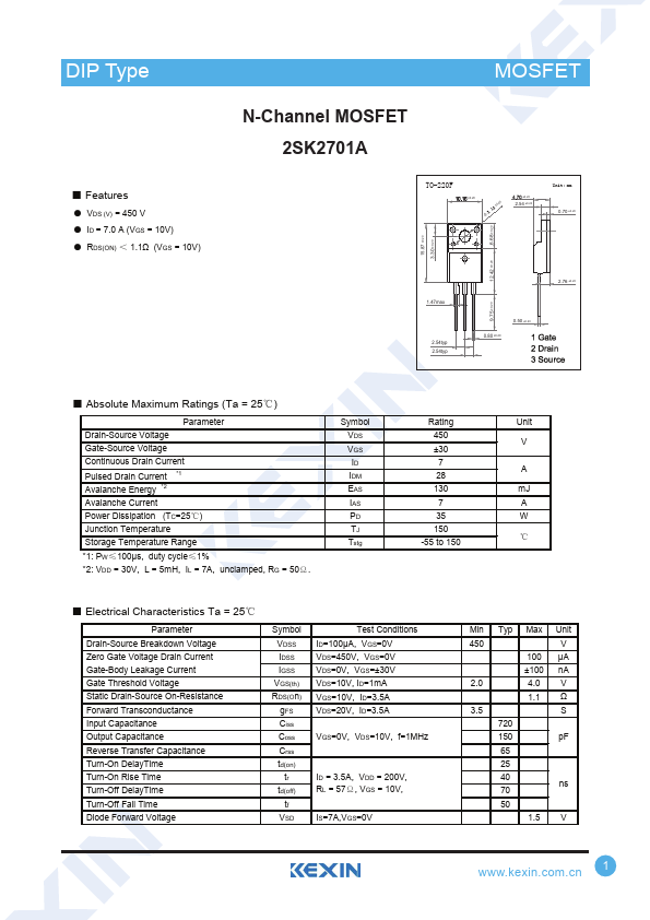 N-Channel MOSFET 2SK2701A