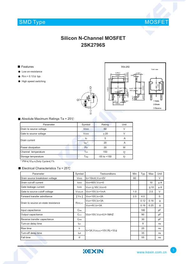 Low on-resistance RDS = 0.12 typ. High speed switching