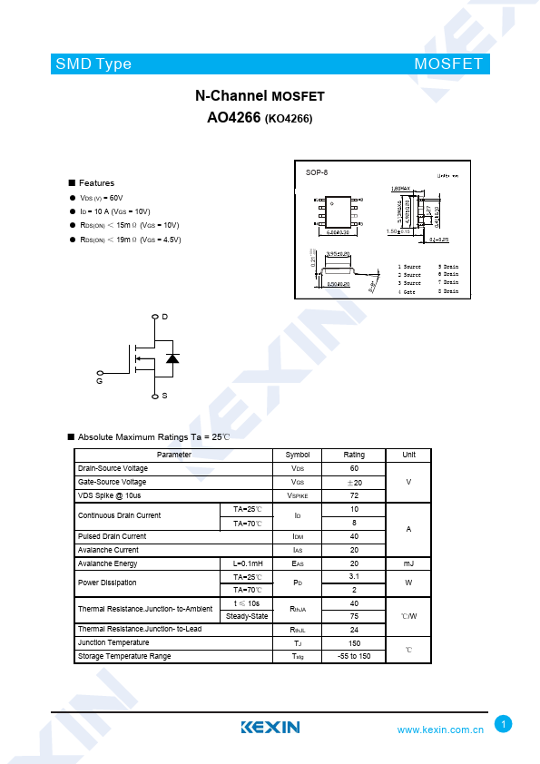 N-Channel MOSFET AO4266 (KO4266)