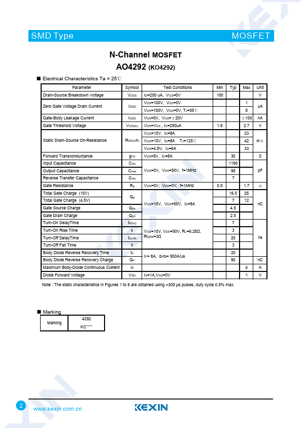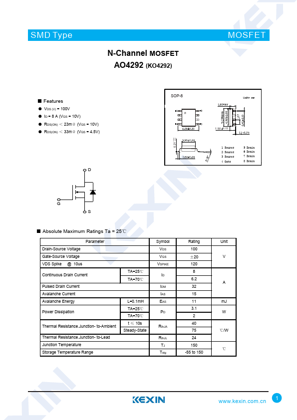 ● VDS (V) = 100V ● ID = 8 A (VGS = 10V) ● RDS(ON) < 23mΩ (VGS = 10V) ● RDS(ON) < 33mΩ (VGS = 4.5V)