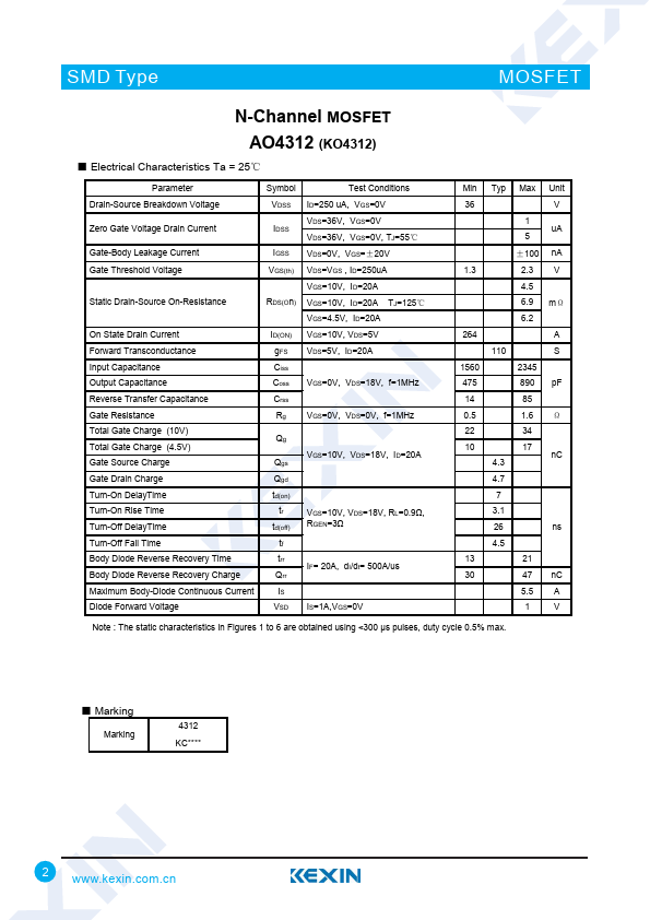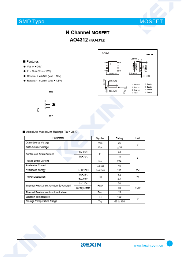 N-Channel MOSFET AO4312 (KO4312)