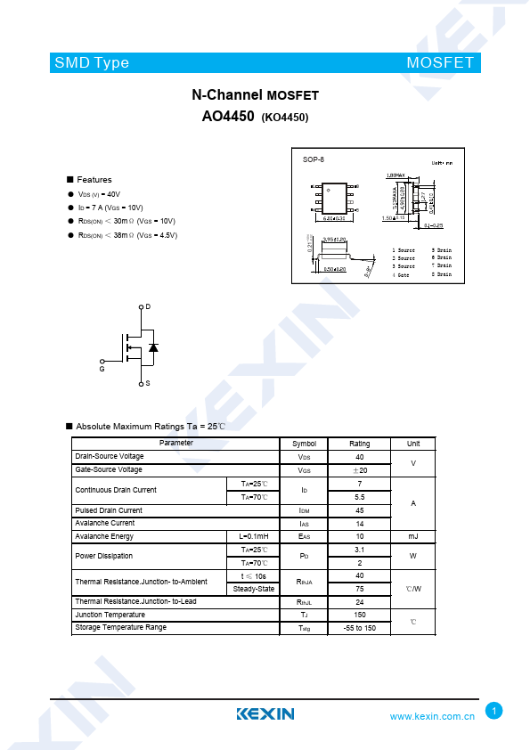 N-Channel MOSFET AO4450 (KO4450)