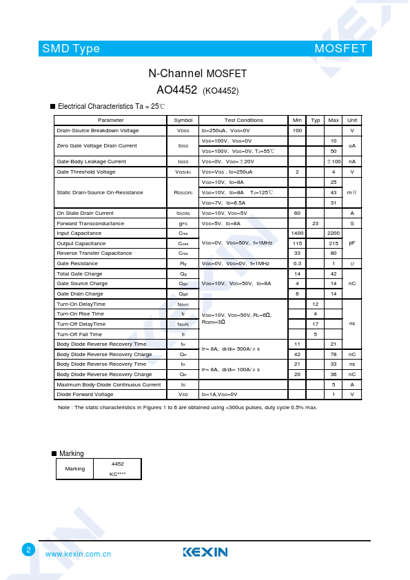 ● VDS (V) = 100V ● ID = 8 A (VGS = 10V) ● RDS(ON) < 25mΩ (VGS = 10V) ● RDS(ON) < 31mΩ (VGS = 7V)