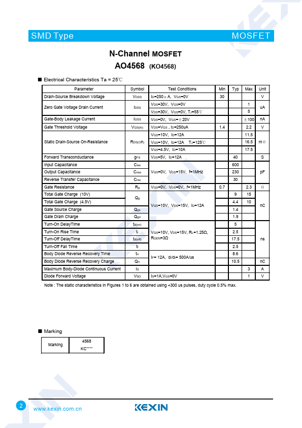 ● VDS (V) = 30V ● ID = 12 A (VGS = 10V) ● RDS(ON) < 11.5mΩ (VGS = 10V) ● RDS(ON) < 17.5mΩ (VGS = 4.5V)