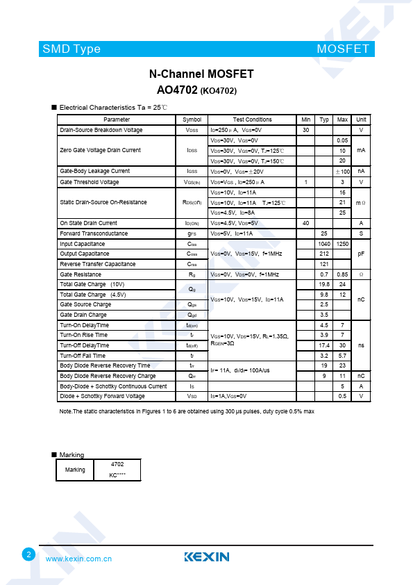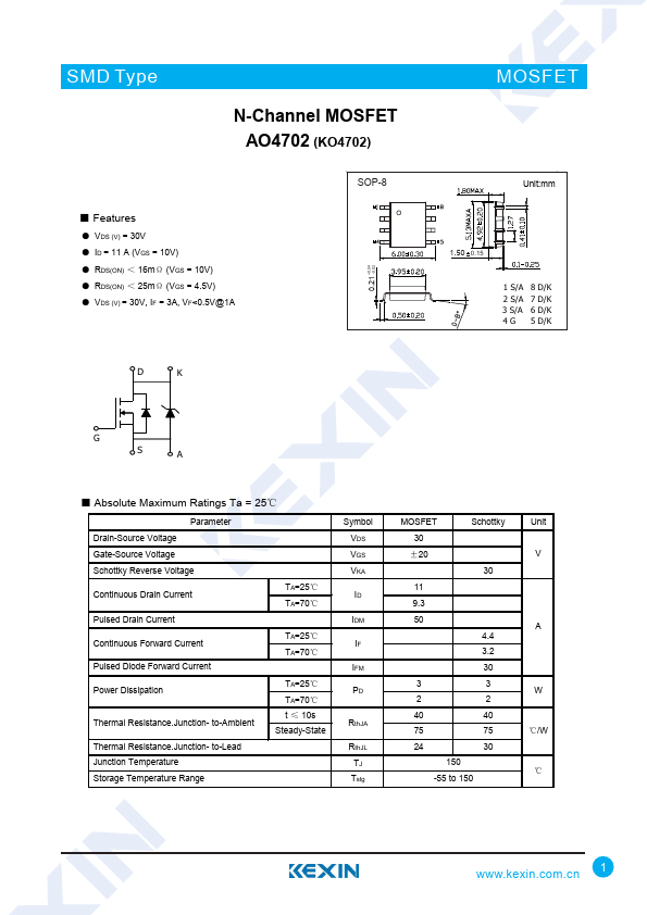 | AO4702 | N-Channel Enhancement Mode Field Effect Transistor | Alpha & Omega Semiconductors |