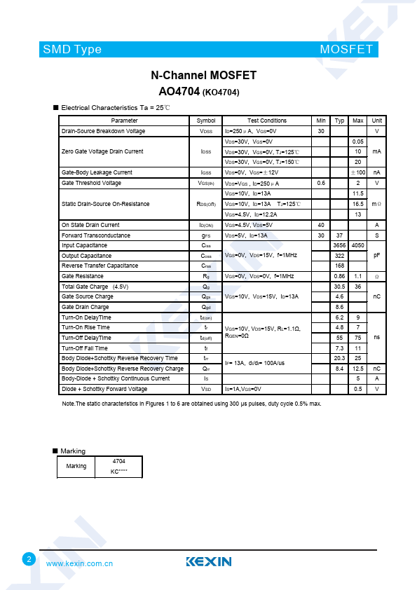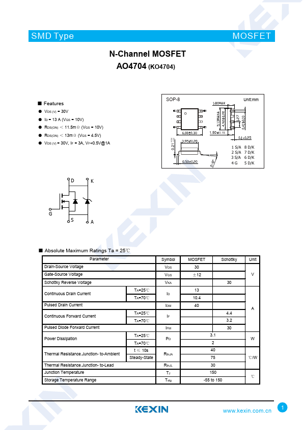 | AO4704 | N-Channel Enhancement Mode Field Effect Transistor | Alpha & Omega Semiconductors |