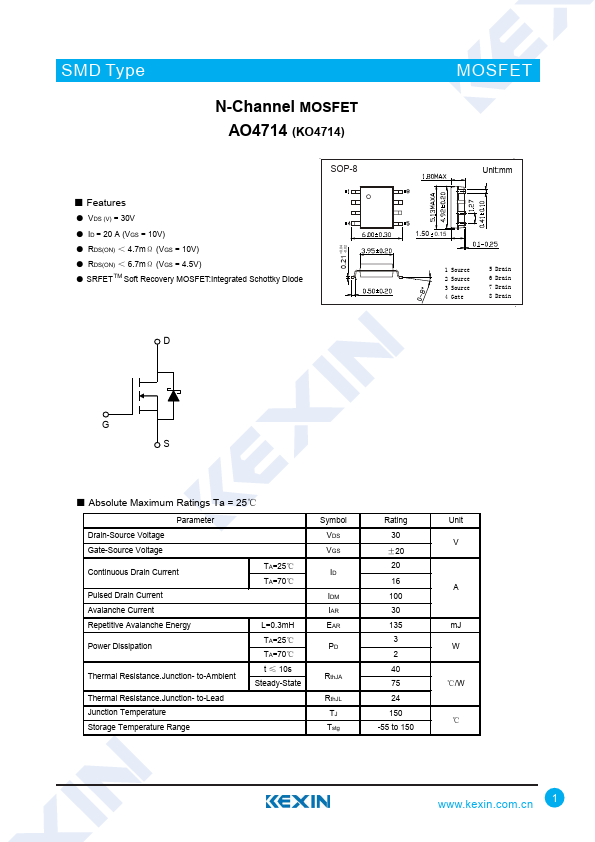 | AO4714 | N-Channel MOSFET | Alpha & Omega Semiconductors |