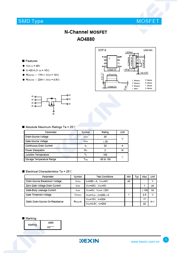 | AO4882 | 40V Dual N-Channel MOSFET | Alpha & Omega Semiconductors |
