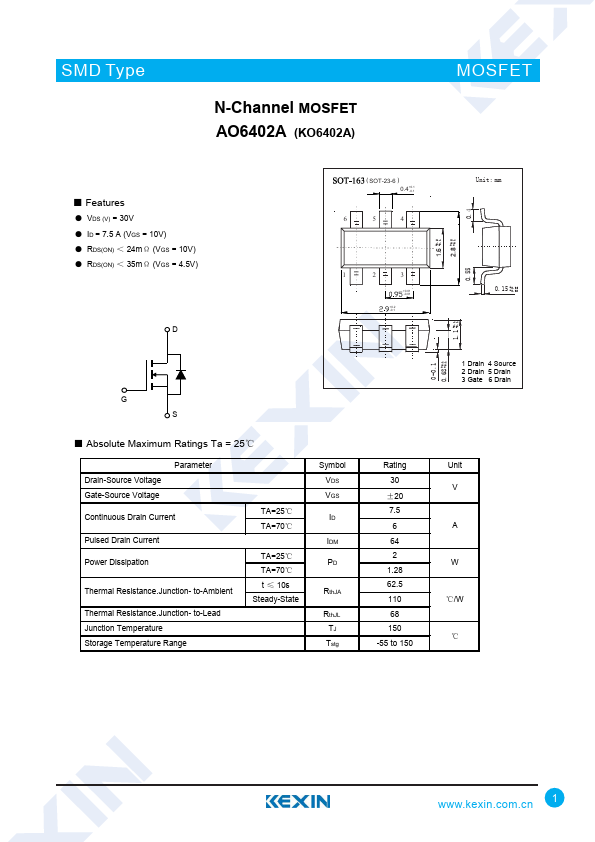 N-Channel MOSFET AO6402A (KO6402A)