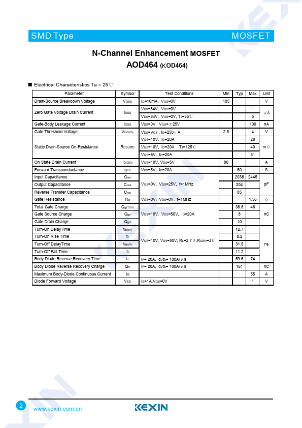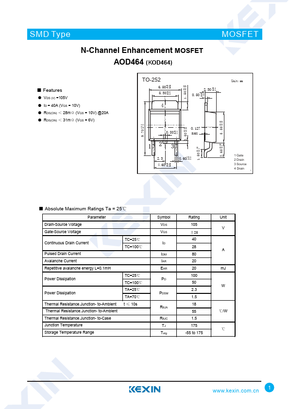 N-Channel Enhancement MOSFET AOD464 (KOD464)