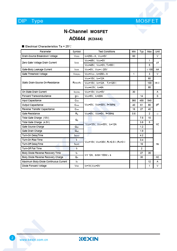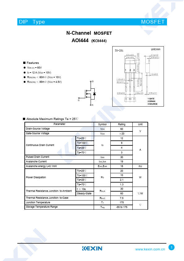 ● RDS(ON) < 60mΩ (VGS = 10V)