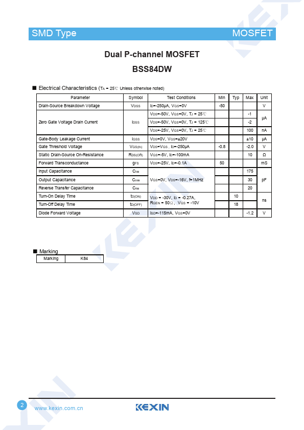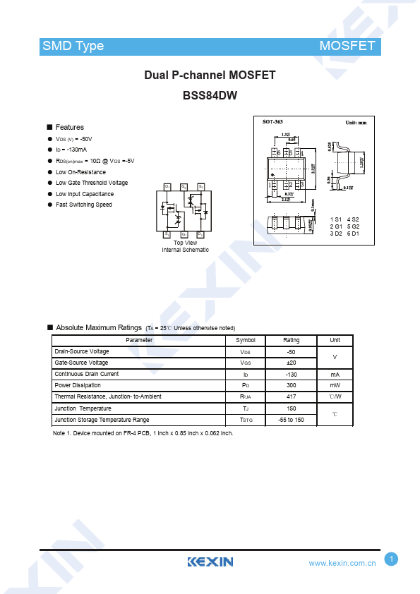 Dual P-channel MOSFET BSS84DW