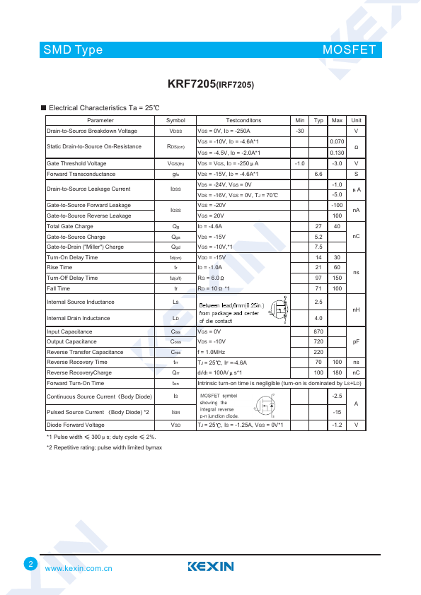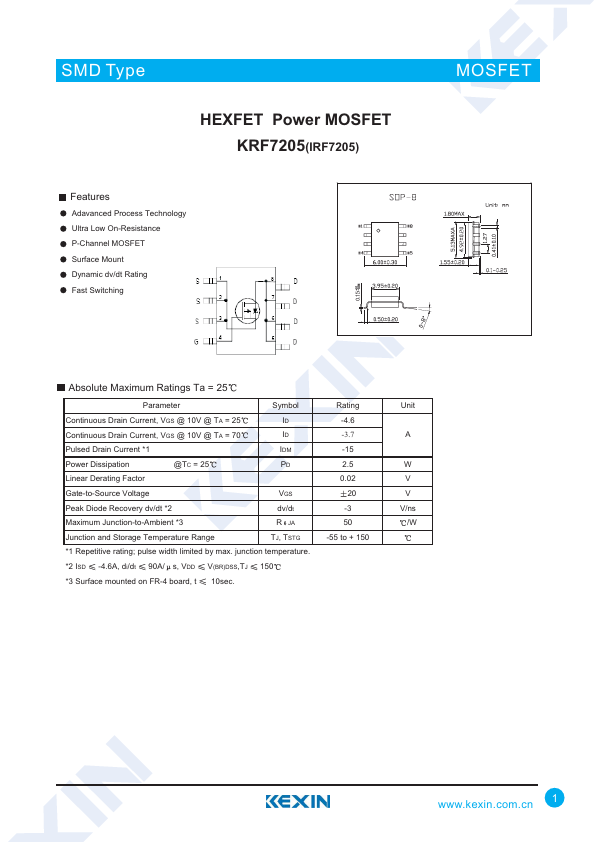 HEXFET Power MOSFET KRF7205(IRF7205)