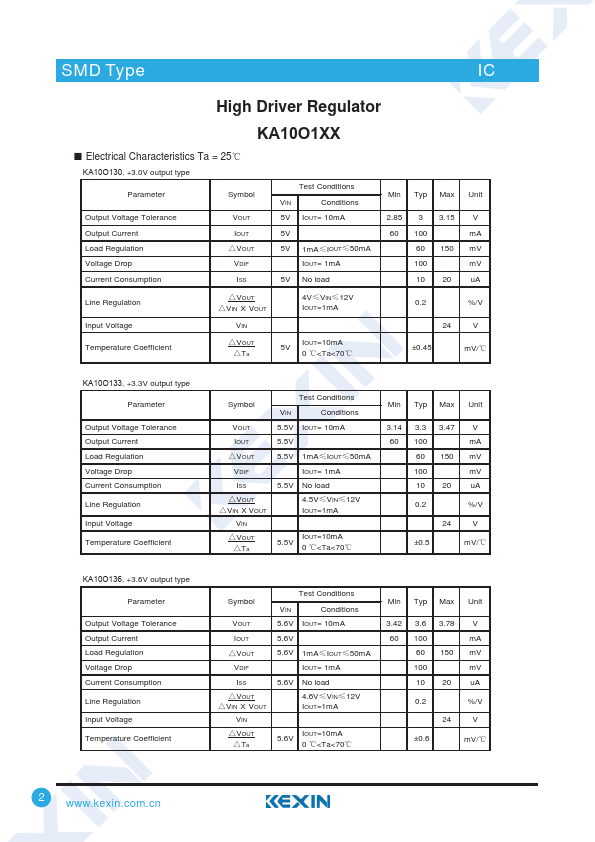 ƽ Low power consumption ƽ Low voltage drop ƽ Low temperature coefficient ƽ High input voltage (up to 24V) ƽ High output current : 100mA