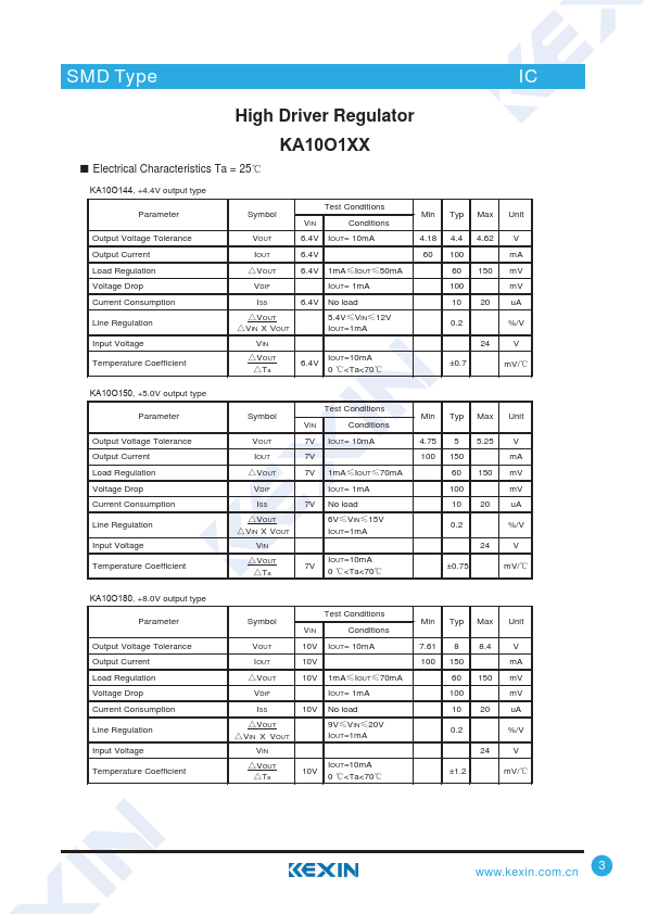 Part No. KA10O130 KA10O133 KA10O136 KA10O144 KA10O150 KA10O180