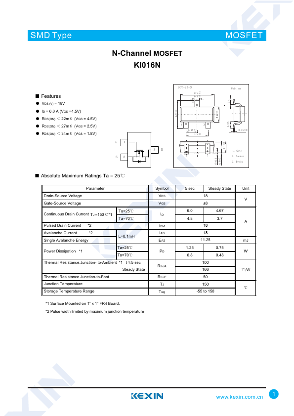 Continuous Drain Current TJ =150ć*1 Pulsed Drain Current *2