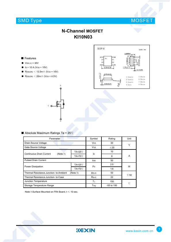 Note.1:Surface Mounted on FR4 Board, t İ 10 sec.
