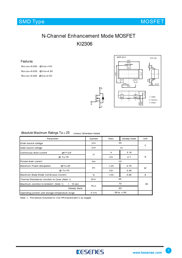 N-Channel Enhancement Mode MOSFET KI2306