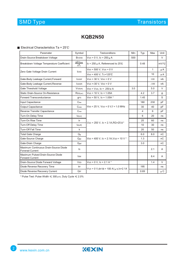 500V N-Channel MOSFET KQB2N50