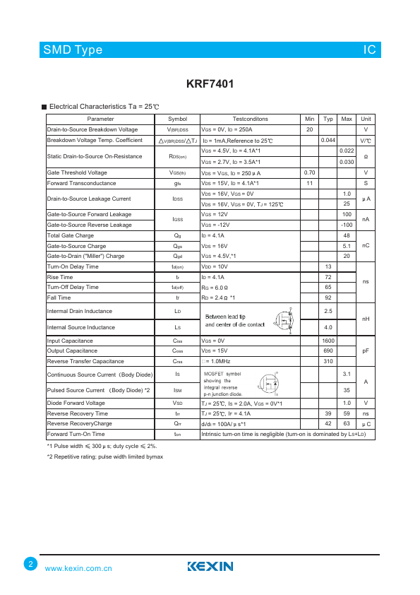 *2 ISD 4.1A, di/dt 100A/ s, VDD V(BR)DSS,TJ 150